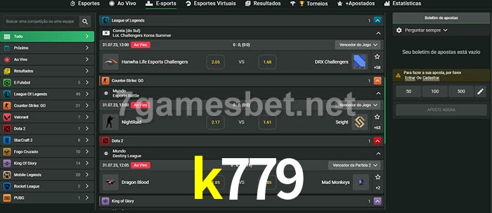 A aposta k779 oferece aos jogadores a experiência mais conveniente de apostas em eSports!
